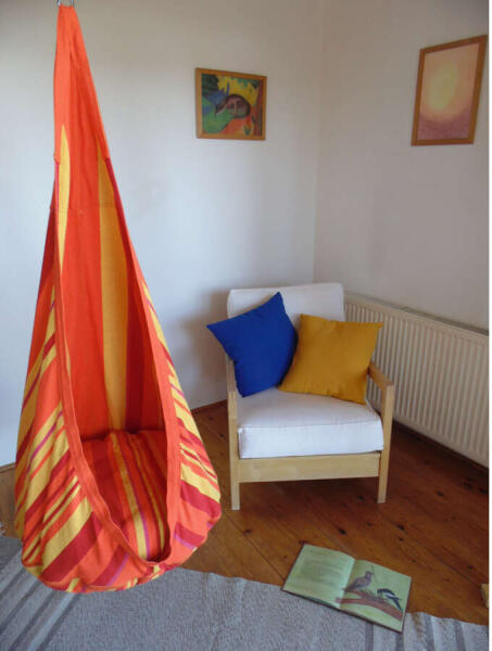 Fészek Függőszék - Narancssárga Csíkos - Kényelmes Pihenőhely a Kisgyermekeknek ? Ez a vidám, narancssárga csíkos függőszék tökéletes hely a kikapcsolódásra és a játékhoz a gyermekek számára. Kényelmes, puha anyagból készült, és egy kivehető párnával is rendelkezik a még nagyobb komfortérzetért. Ideális olvasáshoz, pihenéshez vagy egyszerűen csak a lógás élményéhez. Jellemzők:Anyag: 80% pamut, 20% újrahasznosított poliészter - környezetbarát és bőrbarát! ♻️ Szín: Élénk narancssárga csíkok Méretek: (Pontos méreteket kérjük, hogy egészítse ki a termék leírását) Terhelhetőség: 80 kg (Pontosabb információ szükséges) Magasság: Kb. 150 cm (Pontosabb információ szükséges) Kivehető párna: Mosható, könnyen tisztítható. Brazíliában készült ?? Gondoskodás: A párnát kiveheti a mosáshoz. (Pontos mosási útmutató szükséges) Élvezze a kényelmet és a biztonságot!