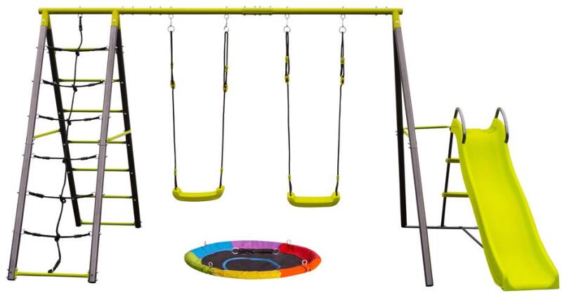 Hogyan biztosítsunk a gyerekeknek sok nagyszerű és egyben biztonságos szórakozást? Szerezzen nekik egy nagy kerti készletet hintával, hintagyűrűvel, mászófallal és csúszdával. A körön a gyerekek kényelmesen hintáznak, a hintán versenyeznek, hogy ki tud feljebb repülni, a csúszda szórakoztatja és javítja a fizikai erőnlétüket, a mászófal pedig valami új kipróbálására ösztönzi.